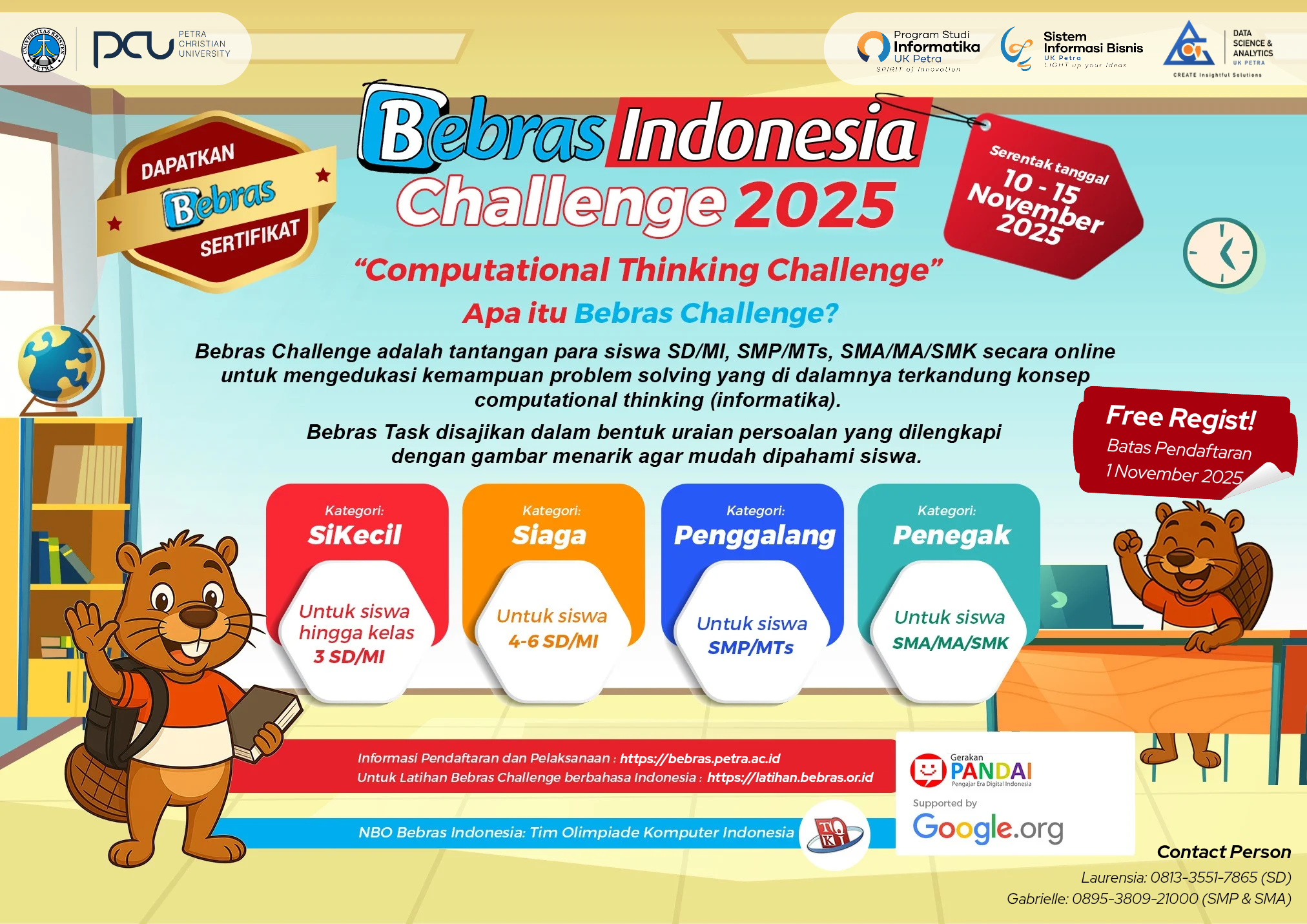 Masalah lain di luar yang dituliskan pada tabel ini dapat dilaporkan melalui Panitia Biro Bebras ke Panitia Pusat.